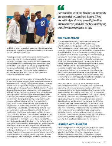 equally vital to Lansing’s long-term success. Looking Infrastructure is a constant focus for Mayor Schor,