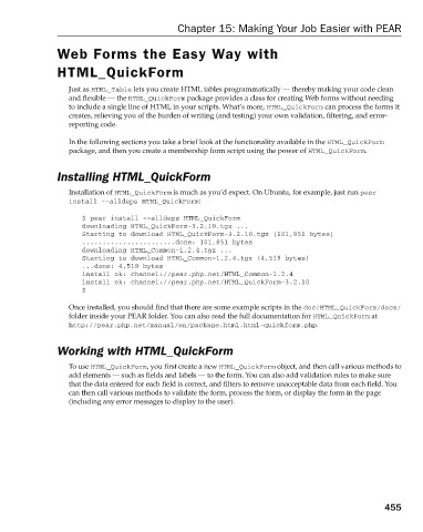 to include a single line of HTML in your scripts. What ’ s more, HTML_QuickForm can process the forms it