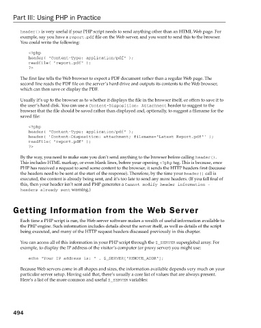 being executed, and many of the HTTP request headers discussed previously in this chapter.
