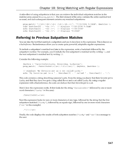 subpattern number. For example, you ’ d include the first subpattern ’ s matched text by writing \1 , and