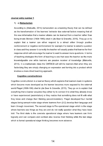 world Piaget (1896-198) cited in (de Beer & Gravette, 2015). They go on to explain that