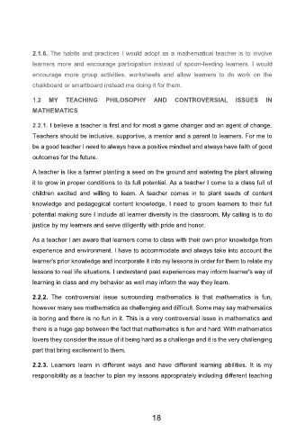 2.1.6. The habits and practices I would adopt as a mathematical teacher is to involve