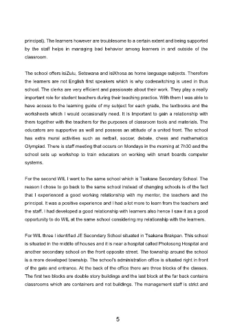 opportunity to do WIL at the same school considering my relationship with the learners.