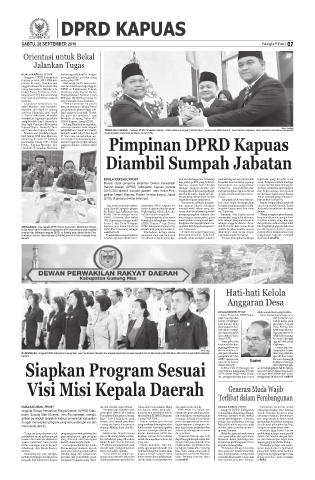 Tiga unsur pimpinan dewan Sementara DPRD Kapuas, Yo- ban amanat rakyat, sekaligus kesejahteraan masyarakat di Ka- atau pemerintah daerah, lanjut