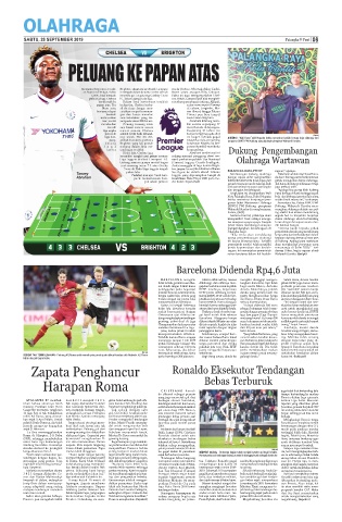 melepas tendangan menekan lambung Jordan Veretout ber- Zaniolo dan Lorenzo Pellegrini, tendangan bebas. memiliki eksekutor-eksekutor juh buah gol dari tendangan be- perparah kondisi CR7. Maka