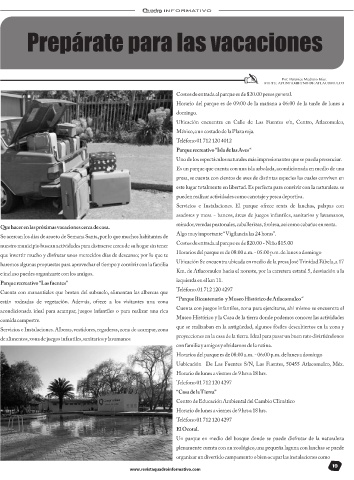 Servicios e Instalaciones. El parque ofrece renta de lanchas, palapas con