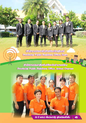 ส�านักงานประชาสัมพันธ์จังหวัดสุรินทร์ Provincial Public Relations Office, Surin ส�านักงานประชาสัมพันธ์จังหวัดอ�านาจเจริญ Provincial Public Relations Office, Amnat Charoen 32 ปี สปข.2 สื่อประชารัฐ สู่ไทยนิยมยั่งยืน 45