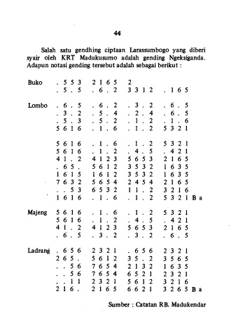 Salah satu gendhing ciptaan I..arassumbogo yang diberi