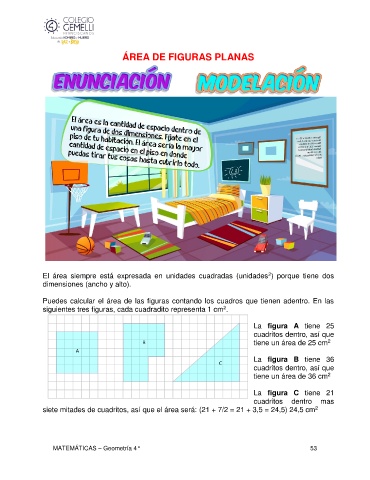 Puedes calcular el área de las figuras contando los cuadros que tienen adentro. En las