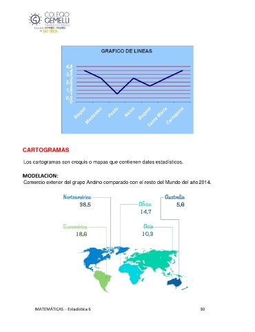 CARTOGRAMAS Los cartogramas son croquis o mapas que contienen datos estadísticos. MODELACION: Comercio exterior del grupo Andino comparado con el resto del Mundo del año 2014. MATEMÁTICAS – Estadística 6 30