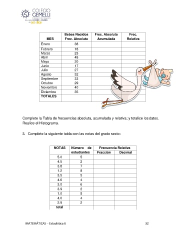 3. Complete la siguiente tabla con las notas del grado sexto: