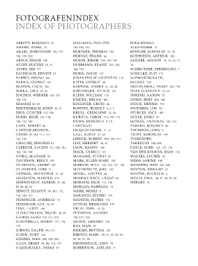 BISCHOF, WERNER 106, 107, KLEIN, WILLIAM 145 SISKIND, AARON 75