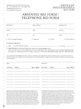 I accept WestLicht Photographica Auction to bid on my behalf on the following lots. Absentee bids must be received 24 hours prior to