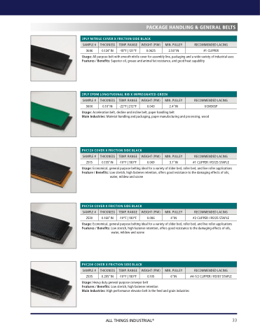 Usage: All purpose belt with smooth nitrile cover for assembly line, packaging and a wide variety of industrial uses