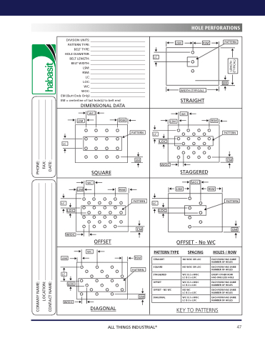 DIVISION UNITS: PATTERN TYPE: BELT TYPE: HOLE DIAMETER: BELT LENGTH: BELT WIDTH: LSM: RSM: LC: LOC: WC: WOC: EM (Butt Ends Only)