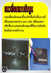 รอยเชื่อมลักษณะนี้จะเกิดขึ้นกับชิ้นงานที่ เชื่อมพอกหลายๆ แนว เช่น เชื่อมเพลา หรือชิ้นงานต่อชนลักษณะที่ชิ้นงานติดกัน โดยไม่บากหน้างาน 46