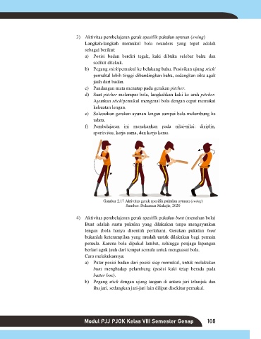 3) Aktivitas pembelajaran gerak spesifik pukulan ayunan (swing)