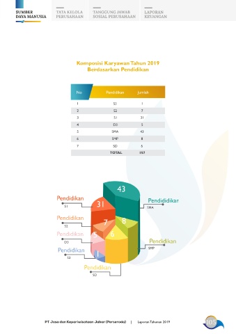 SUMBER TATA KELOLA TANGGUNG JAWAB LAPORAN DAYA MANUSIA PERUSAHAAN SOSIAL PERUSAHAAN KEUANGAN 105 75 PT Jasa dan Kepariwisataan Jabar (Perseroda) | Laporan Tahunan 2019