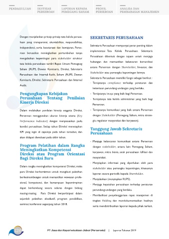 Dengan menjalankan prinsip-prinsip tata kelola perusa- SEKRETARIS PERUSAHAAN