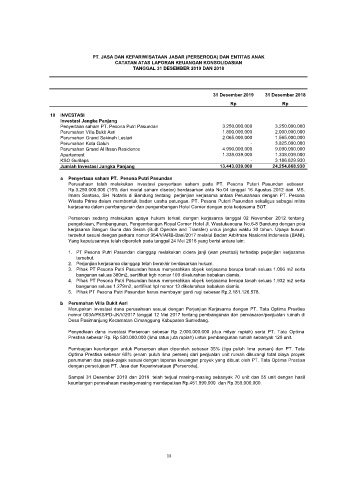 Perusahaan telah melakukan investasi penyertaan saham pada PT. Pesona Puteri Pasundan sebesar