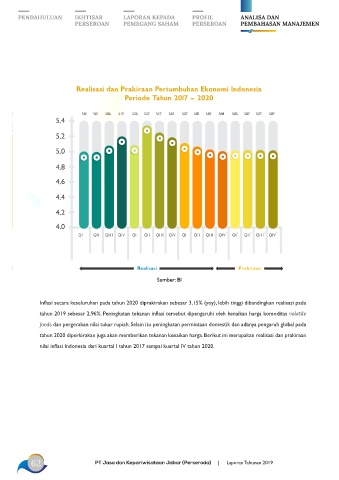 Inflasi secara keseluruhan pada tahun 2020 diprakirakan sebesar 3,15% (yoy), lebih tinggi dibandingkan realisasi pada