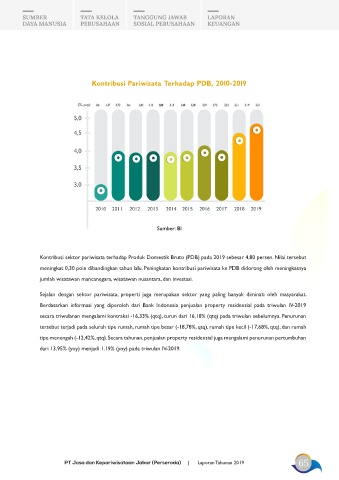 Kontribusi sektor pariwisata terhadap Produk Domestik Bruto (PDB) pada 2019 sebesar 4,80 persen. Nilai tersebut