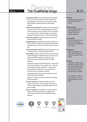Contemporary Design: The new Sapa Dualframe range signifies a new era in aluminium fenestration, with products that have been specifical designed to comply with the ever increasing complexity Building Regulations, British Standards and other regulatory demands.