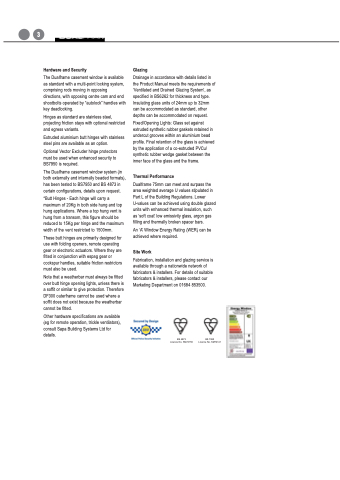 Other hardware specifications are available (eg for remote operation, trickle ventilators), consult Sapa Building Systems Ltd for details.