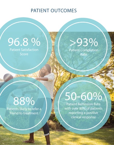 PATIENT OUTCOMES 96.8 % >93% Patient Satisfaction Patient Completion Score Rate 88% 50-60% Patient Remission Rate Patients likely to refer a with over 80% of patients friend to treatment reporting a positive clinical response