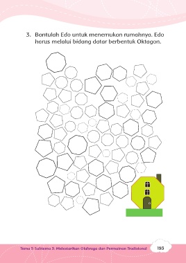 3. Bantulah Edo untuk menemukan rumahnya. Edo harus melalui bidang datar berbentuk Oktagon. Tema 5 Subtema 3: Melestarikan Olahraga dan Permainan Tradisional 193