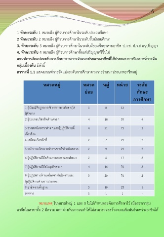 ตารางที่ 1.1 แสดงเกณฑ์การจัดแบ่งระดับการศึกษาตามการจ าแนกประเภทอาชีพหมู่