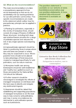 Position insight: Honeybees Q&A Q3. What are the recommendations? The position statement is