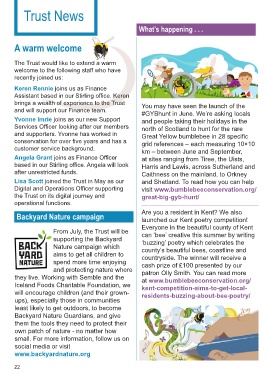 Yvonne Imrie joins as our new Support and people taking their holidays in the Bumblebee Conservation Trust and the house-