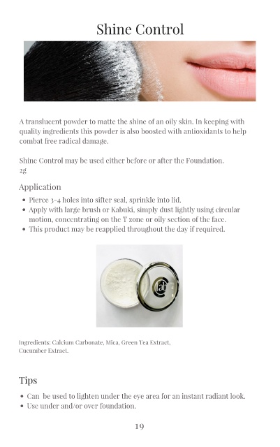 A translucent powder to matte the shine of an oily skin. In keeping with