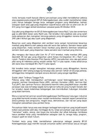 sebagian upah atau gaji yang dilaporkan seperti kasus pilot dan co pilot Lion Air JT