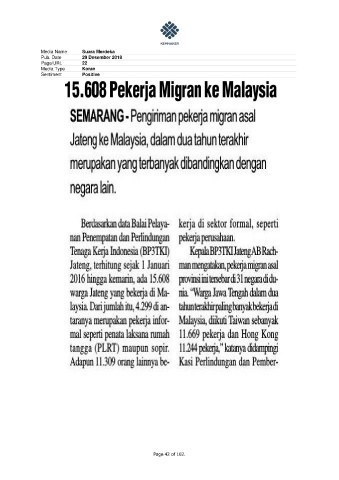 Media Name Suara Merdeka Pub. Date 29 Desember 2018 Page/URL 22 Media Type Koran Sentiment Positive Page 42 of 102.