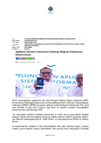 Title APLIKASI SISTEM INFORMASI PEKERJA MIGRAN INDONESIA DILUNCURKAN