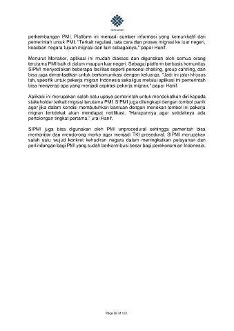 stakeholder terkait migrasi terutama PMI. SIPMI juga dilengkapi dengan tombol panik