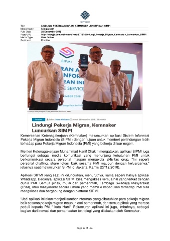 Title LINDUNGI PEKERJA MIGRAN, KEMNAKER LUNCURKAN SIMPI