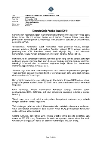 Title KEMENAKER GENJOT PELATIHAN VOKASI DI 2019