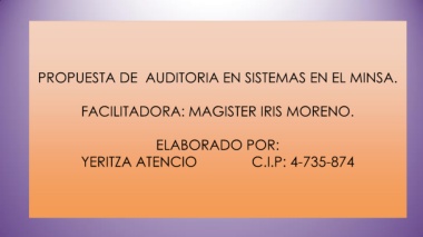 PROPUESTA DE AUDITORIA EN SISTEMAS EN EL MINSA. FACILITADORA: MAGISTER IRIS MORENO. ELABORADO POR: YERITZA ATENCIO C.I.P: 4-735-874