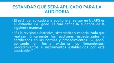 El estándar aplicado a la auditoria a realizar en ULAPS es