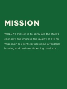 MISSION WHEDA’s mission is to stimulate the state’s economy and improve the quality of life for Wisconsin residents by providing affordable housing and business financing products.