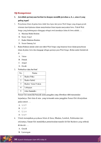 kepadanya. Dari data di atas yang termasuk nama panggilan Sunan Giri ditunjukkan