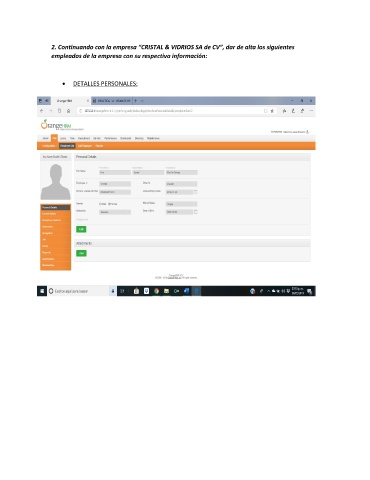 2. Continuando con la empresa “CRISTAL & VIDRIOS SA de CV”, dar de alta los siguientes empleados de la empresa con su respectiva información: • DETALLES PERSONALES: