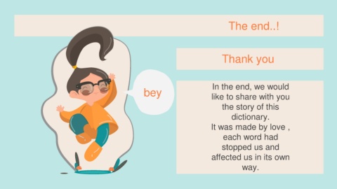 bey The end..! Thank you In the end, we would like to share with you the story of this dictionary. It was made by love , each word had stopped us and affected us in its own way.