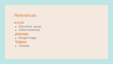 References words ★ Discussion group ★ Oxford dictionary pictures ★ Google Image Videos ★ Youtube.
