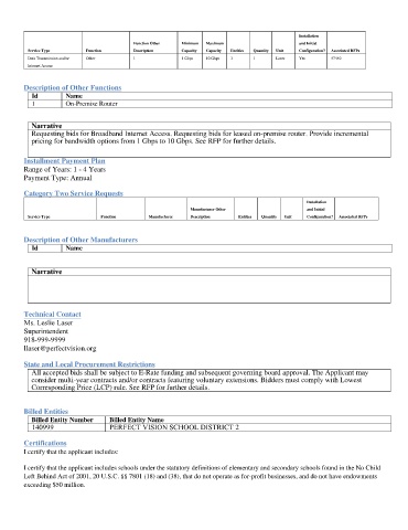 Service Type Function Manufacturer Description Entities Quantity Unit Configuration? Associated RFPs