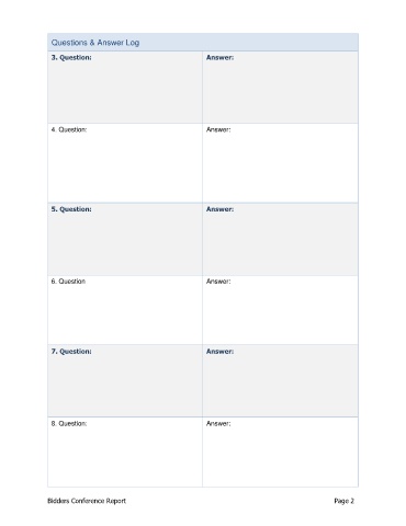 Questions & Answer Log 3. Question: Answer: 4. Question: Answer: 5. Question: Answer: 6. Question Answer: 7. Question: Answer: 8. Question: Answer: Bidders Conference Report Page 2