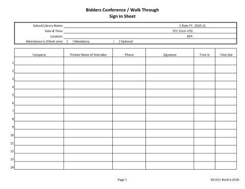 Company Printed Name of Attendee Phone Signature Time In Time Out